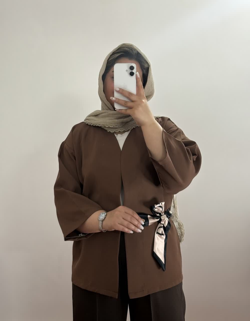 مانتو کتی زنانه مدل یقه هفت استین سرب جنس کرپ