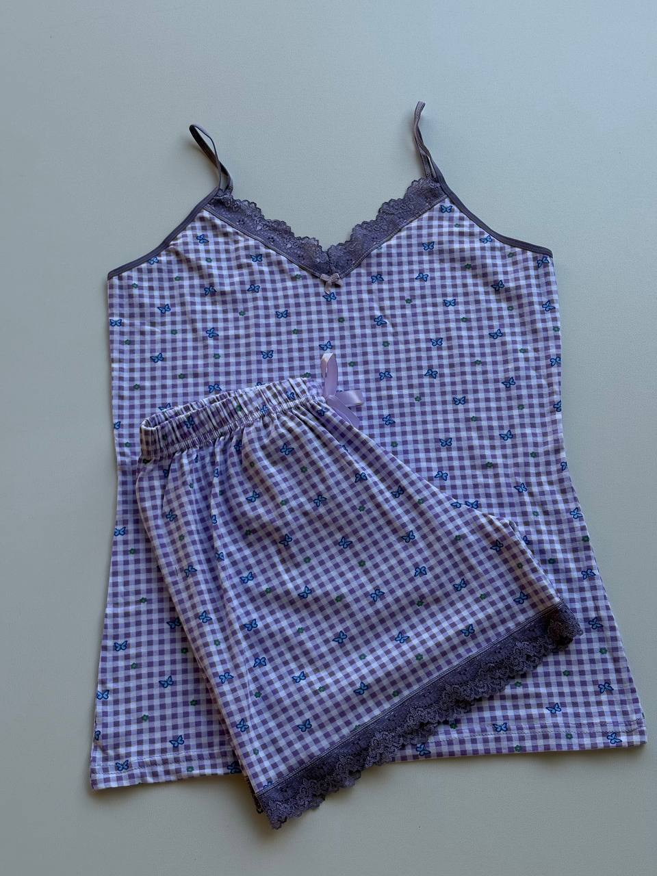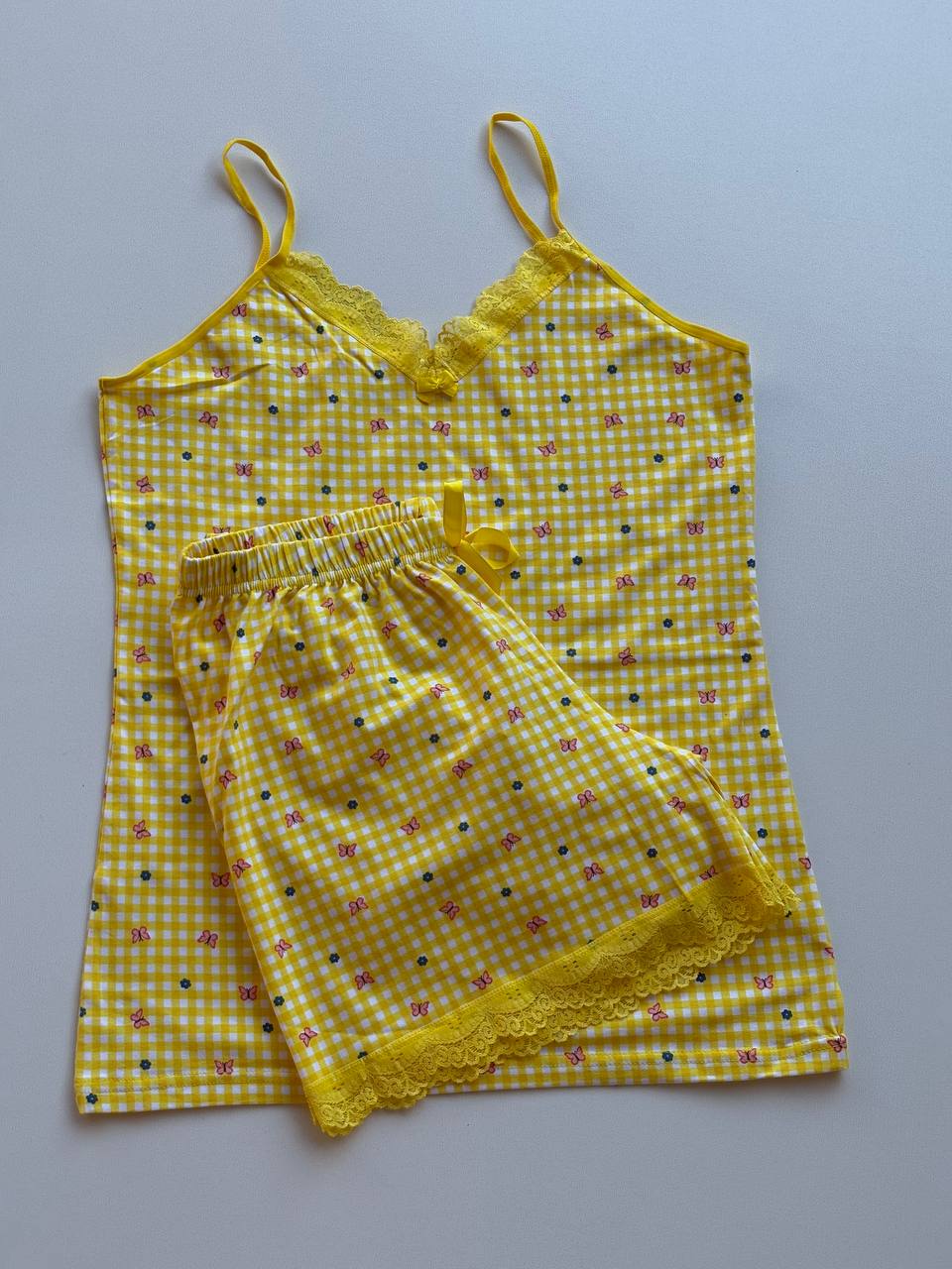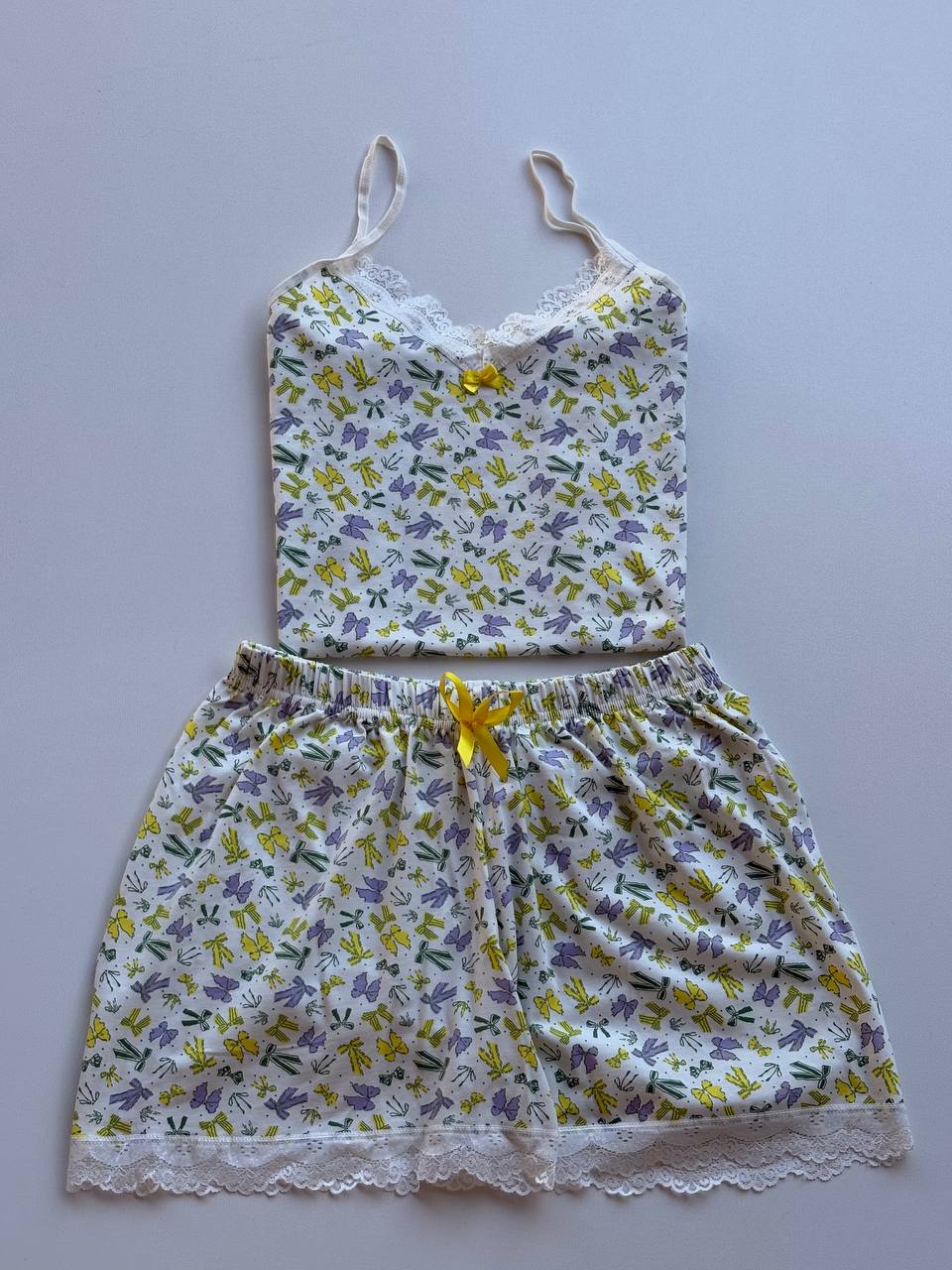 شامل تاپ دانتل دار و شورتک لبه گیپور